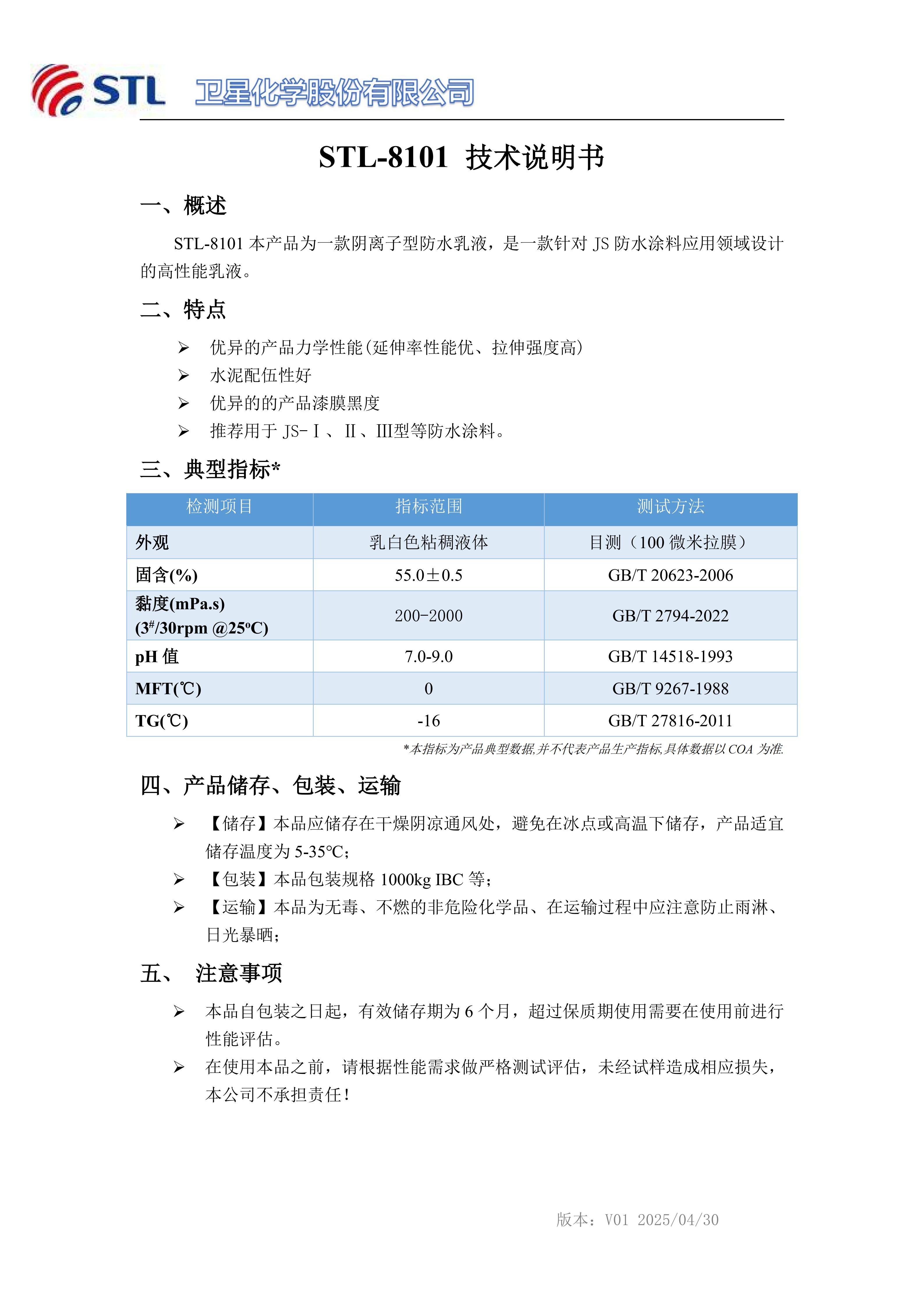 阴离子型防水乳液 STL-8101 浙江卫兴新材料科技有限公司