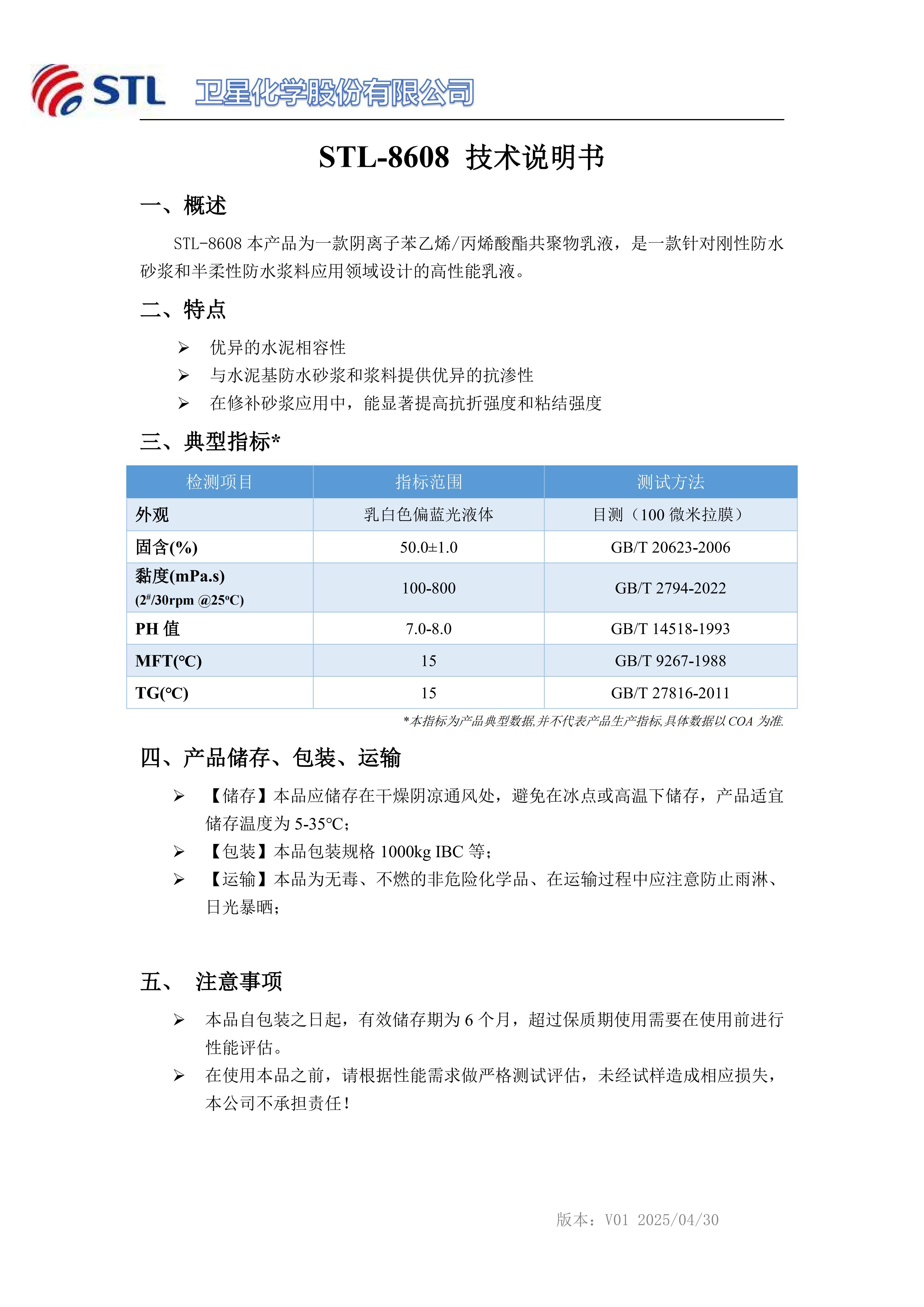 阴离子苯乙烯/丙烯酸酯共聚物乳液 STL-8608 浙江卫兴新材料科技有限公司