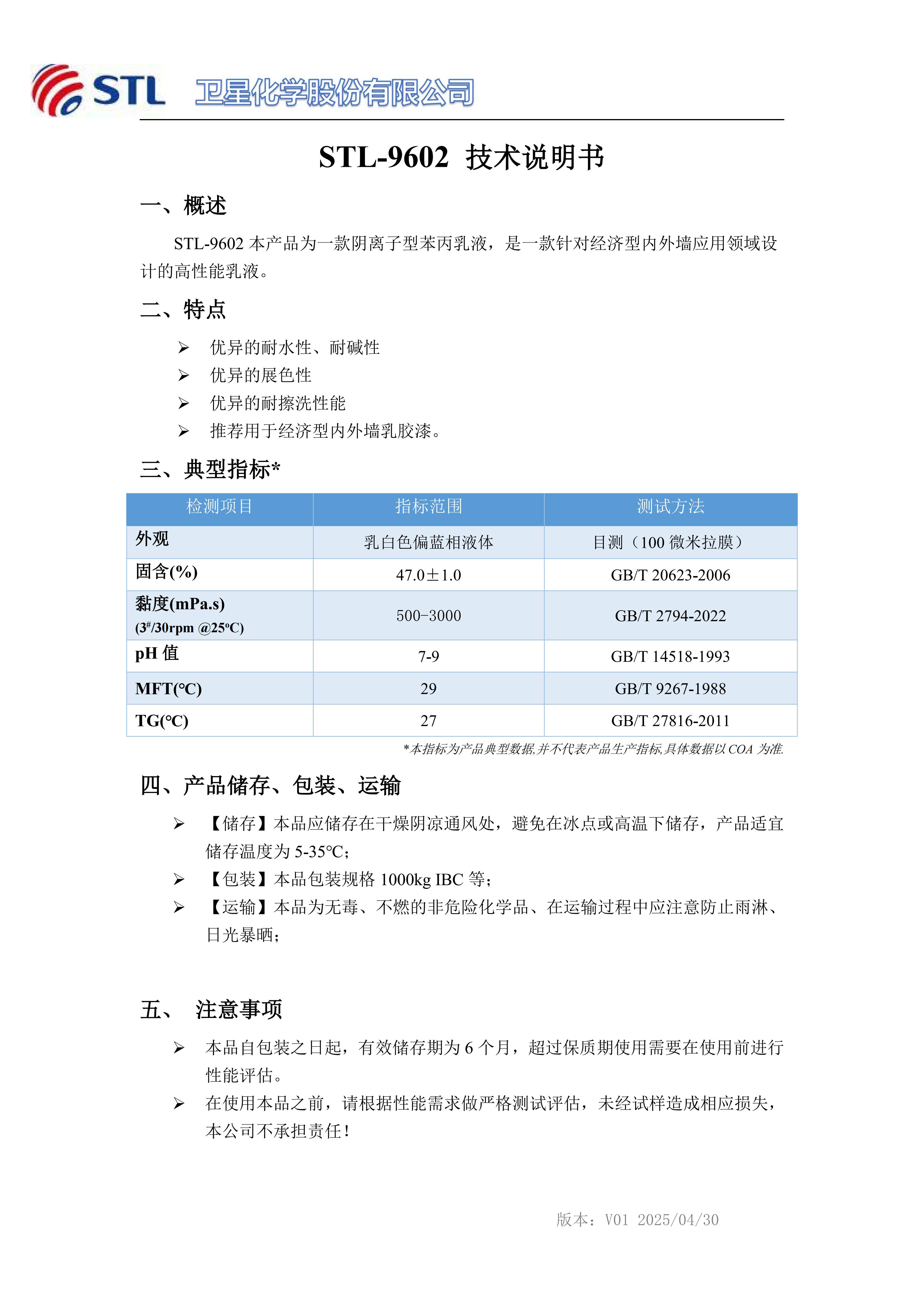 阴离子型苯丙乳液 STL-9602 浙江卫兴新材料科技有限公司
